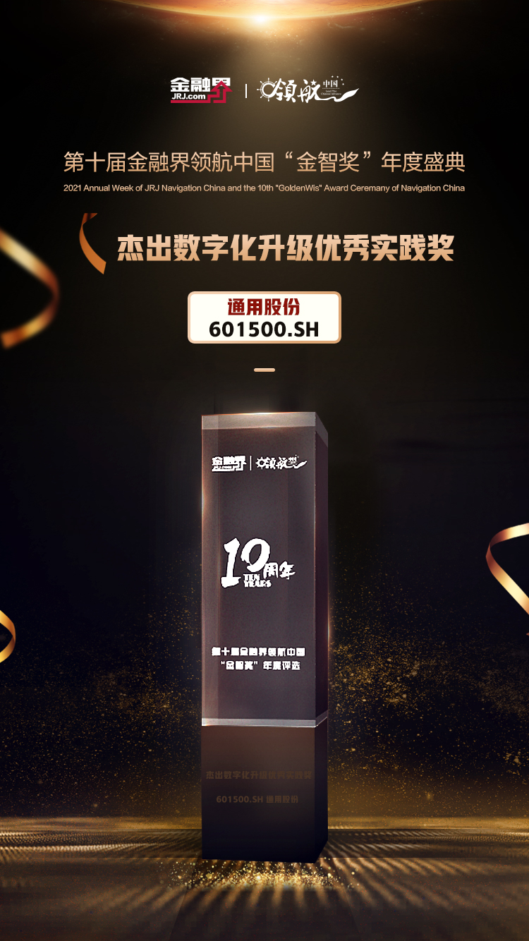 通用股份榮獲2021領航中國杰出數字化升級優秀實踐獎 12月24日,在由金融界舉辦的2021第十屆領航中國金智獎年度盛典頒獎典禮上,通用股