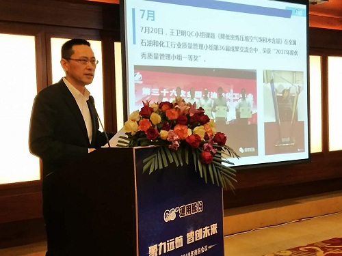 通用股份董事長顧萃先生在會議上作了“賦能2018”的重要主題演講?;厥?017,顧董對宏觀經濟和行業情況進行了生動解讀。展望2018,顧董以“大、新、快、鏈”四個字闡述了當下時代的發展趨勢,探討了智能化以及創新思維對未來工業和生活的深遠影響。通用股份將從“制造、產品、營銷、管理、服務”五大賦能促進變革發展,搶占先發優勢,智能制造升級,全球化視野布局,全方位提高效率,做最好的自己。