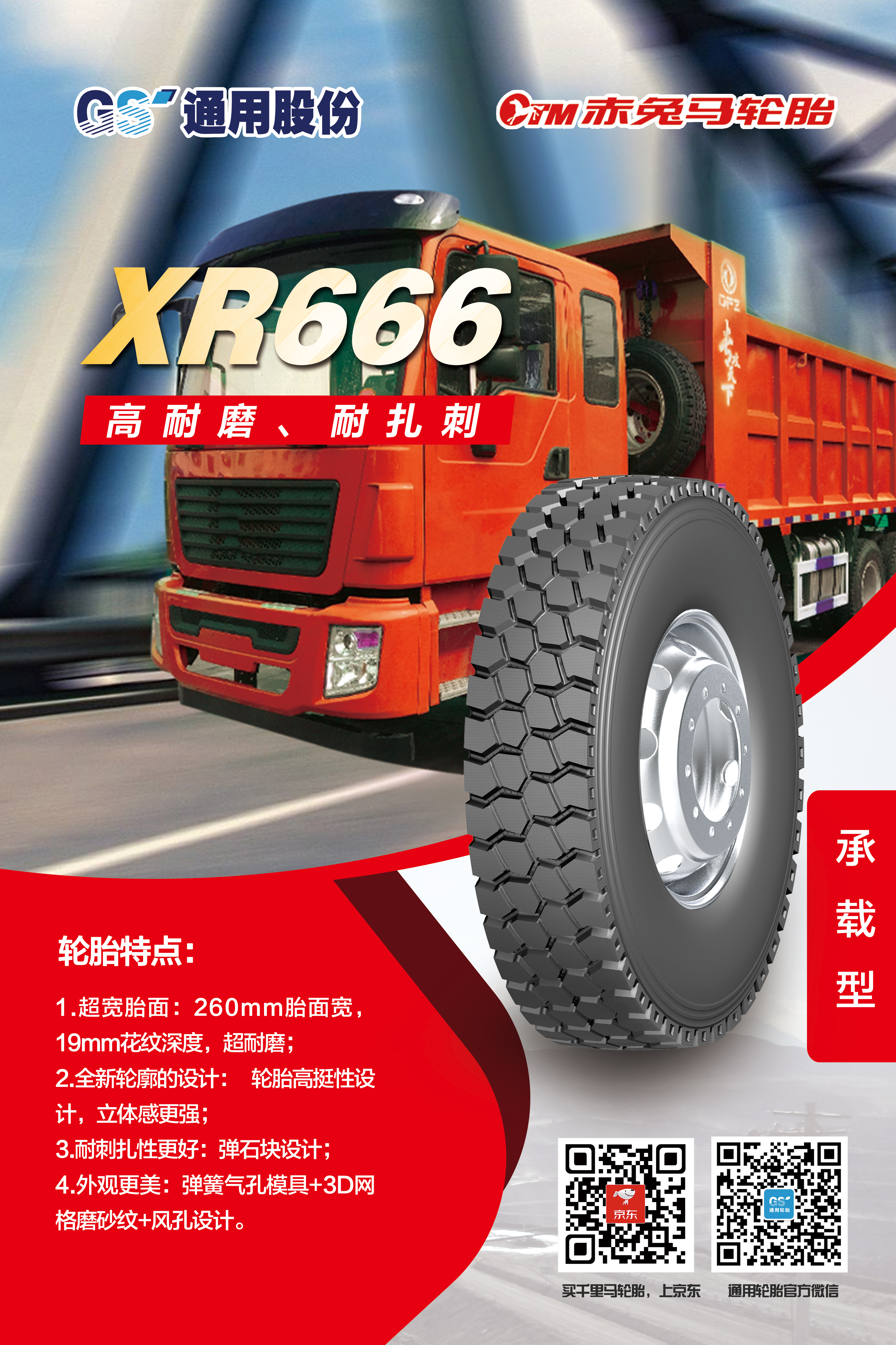 為適應(yīng)不斷變化的市場環(huán)境,滿足消費(fèi)者對輪胎性能的更高需求,通用股份以創(chuàng)新為突破口,應(yīng)用新進(jìn)技術(shù),在承載能力上實(shí)現(xiàn)突破,推出兩款專為中短途運(yùn)輸車輛量身打造的承載新品——XR666、XR777。作為全新承載系列,XR666、XR777使用全新低生熱胎面配方,耐磨、生熱性能較公司同類產(chǎn)品提升20%以上,有效解決輪胎用戶痛點(diǎn)。除了性能優(yōu)異,兩款輪胎的顏值也十分出色,均采用3D網(wǎng)格磨砂花紋以及全新輪廓設(shè)計,簡潔而不失格調(diào),美觀而盡顯大氣。