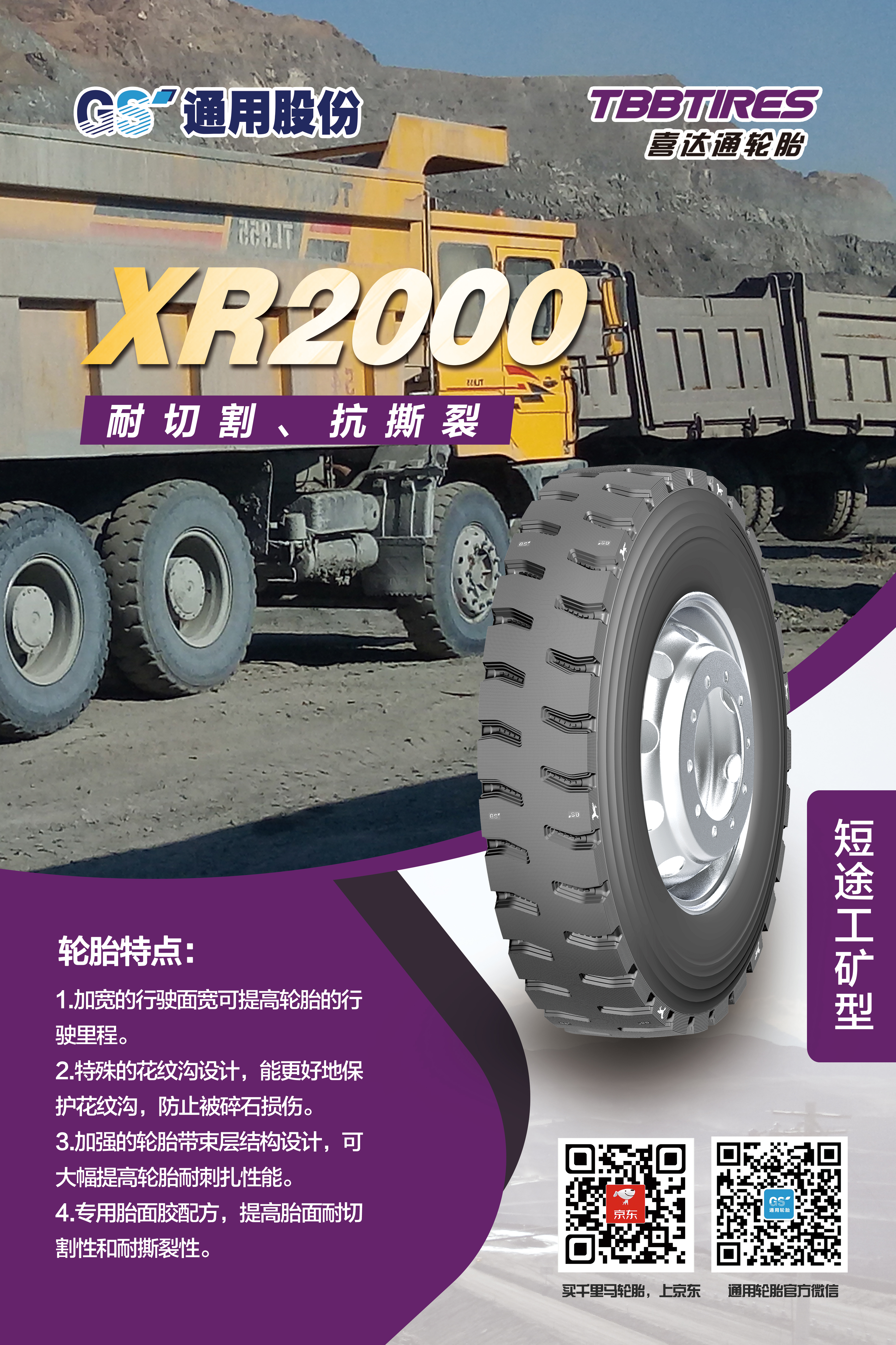 眾所周知,自2007年自主研發(fā)的第一代短途礦山胎問世,通用股份在行業(yè)率先開創(chuàng)了礦山胎這一品類,充分滿足礦區(qū)特殊使用條件和特點(diǎn),備受中國礦山車司機(jī)的喜愛。近年來,通用股份立足國內(nèi)礦區(qū)路況特點(diǎn),對輪胎花紋、配方、結(jié)構(gòu)等進(jìn)一步升級,重磅推出礦山胎傳承之作——XR1000、XR2000。兩款輪胎均擁有全新的外觀設(shè)計、獨(dú)特的結(jié)構(gòu)設(shè)計、高耐磨配方設(shè)計。全新胎面配方的應(yīng)用,大幅提升胎面耐刺扎性能。加強(qiáng)的輪胎帶束層結(jié)構(gòu)設(shè)計,大幅提高輪胎耐扎刺性能。加寬的行駛面,有效提高輪胎行駛里程。相關(guān)數(shù)據(jù)表明,相比同類產(chǎn)品,耐久時數(shù)提升20%,胎圈耐久提升30%,是廣大礦山胎用戶的信心之選。