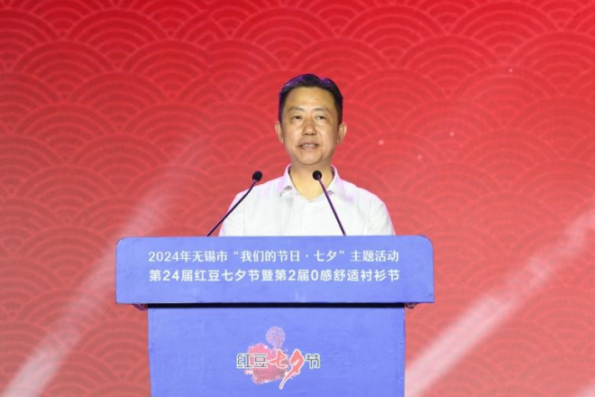 無錫市委宣傳部常務(wù)副部長蔡文煜在致辭中表示,過去二十多年里,紅豆集團始終堅持以傳統(tǒng)文化為寄托,以七夕節(jié)為契機,通過詩歌朗誦會、七夕節(jié)民俗論壇、尋找當代“王維”、感動中國的愛情故事征集等多種形式的活動,將弘揚中國傳統(tǒng)文化落到實處。紅豆集團連續(xù)24年舉辦的“紅豆七夕節(jié)”,不僅是紅豆企業(yè)品牌建設(shè),充分挖掘七夕文化內(nèi)涵的具體行動,更是紅豆學習貫徹落實習近平文化思想,持續(xù)推進中國傳統(tǒng)節(jié)日振興,推動中華優(yōu)秀傳統(tǒng)文化傳承發(fā)展的具體實踐。